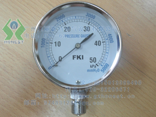 臺灣壓力表中國總代理,廣州奧麗斯特燃氣設備有限公司(15013369490文小姐)代理銷售臺灣FKI集團生產的微壓表,產品精度高,計量準確、外觀美觀大方。微壓表結構原理:微壓表由測量系統包括接頭、波紋...